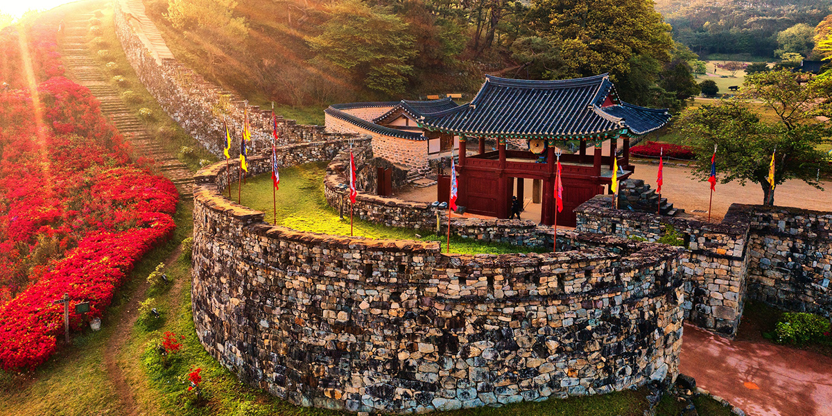 Within the fortress once stood 22 government buildings from the Joseon period, including the dongheon (local magistrate’s office) and gaeksa (official guesthouse). These structures were destroyed by warfare and fires, and restoration efforts have been ongoing since 1976. According to a local legend, it is said that if one carries a stone on one’s head and walks around the fortress three times during a leap month, one will enjoy lifelong health and ascend peacefully to paradise. Owing to this belief, the traditional custom of dapseong—in which women walk along the fortress walls—continues to this day.